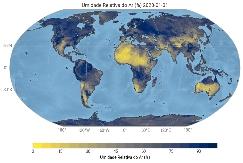 cbar_kwargs={'label': 'Umidade Relativa do Ar (%)'}