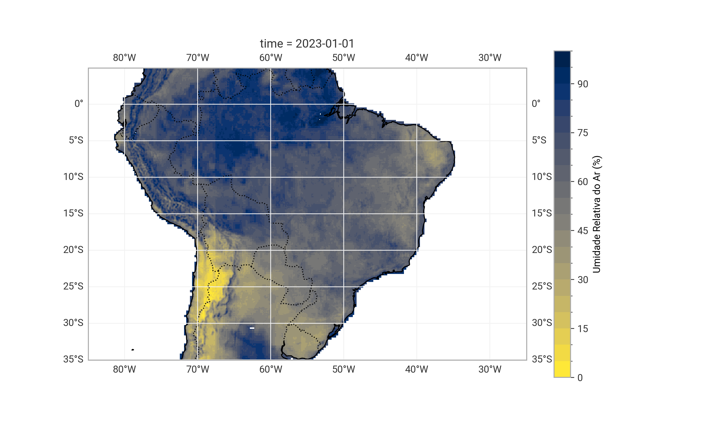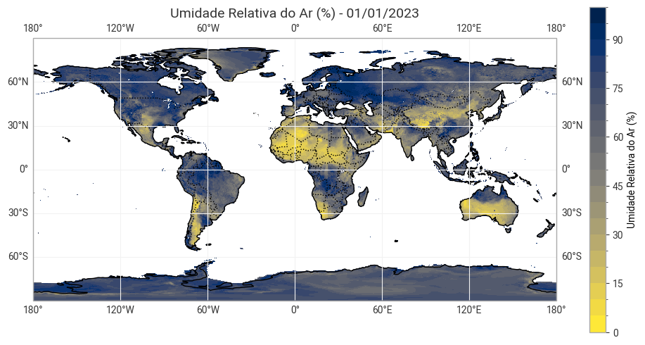 umidade = ds["Relative_Humidity_2m_12h"]# GERANDO VISUALIZAÇÃO COM CARTOPY